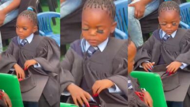 “Not my parents”- Drama as little girl arrives school graduation with longlashes, nails